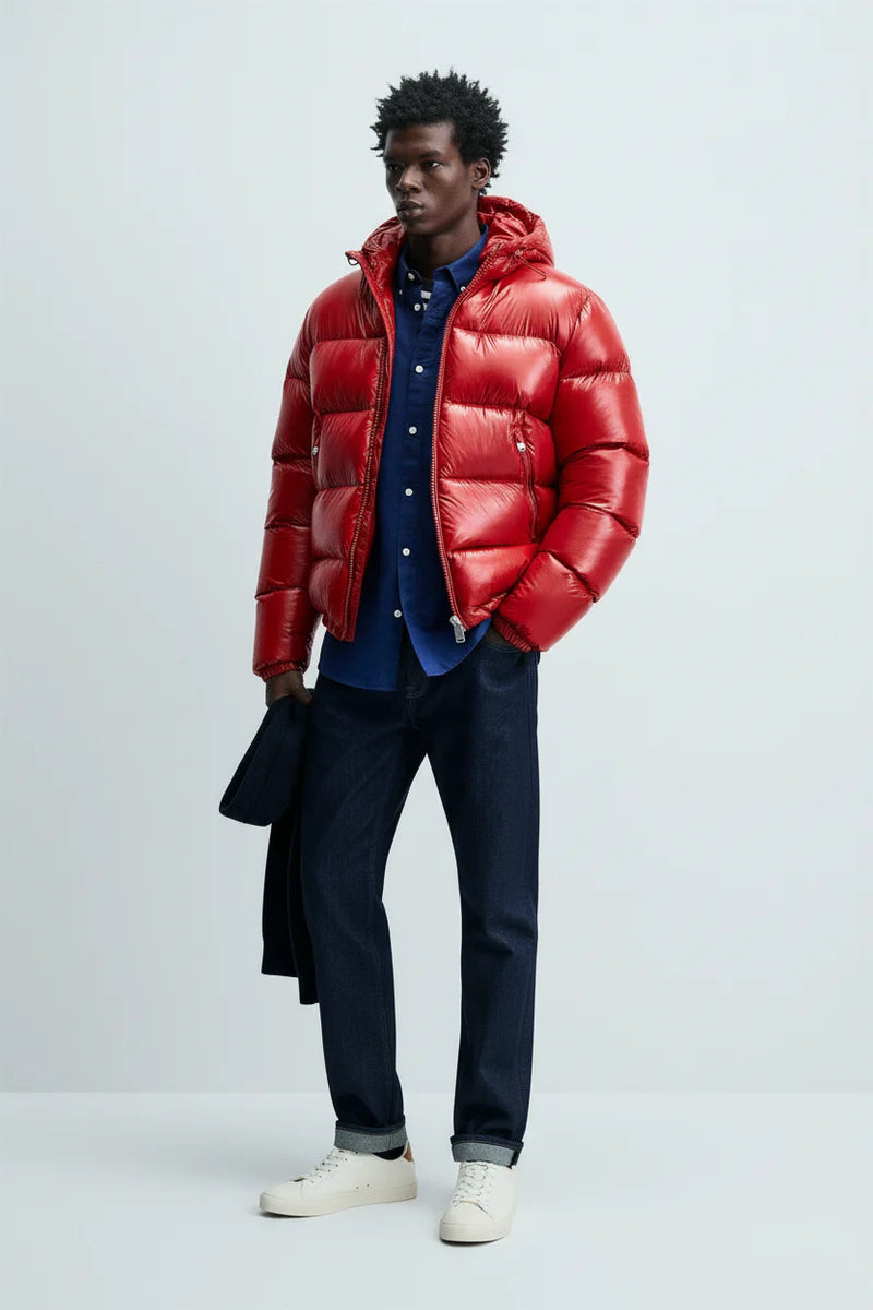 Doudoune en tissu technique avec une finition brillante. Intérieur rempli d'un mélange de plumes et de duvet. Col haut avec capuche réglable et manches longues avec poignets élastiqués. Poches passepoilées à la taille et détail de poche intérieure. Ourlet ajustable avec élastique sur les côtés. Fermeture éclair à l'avant.