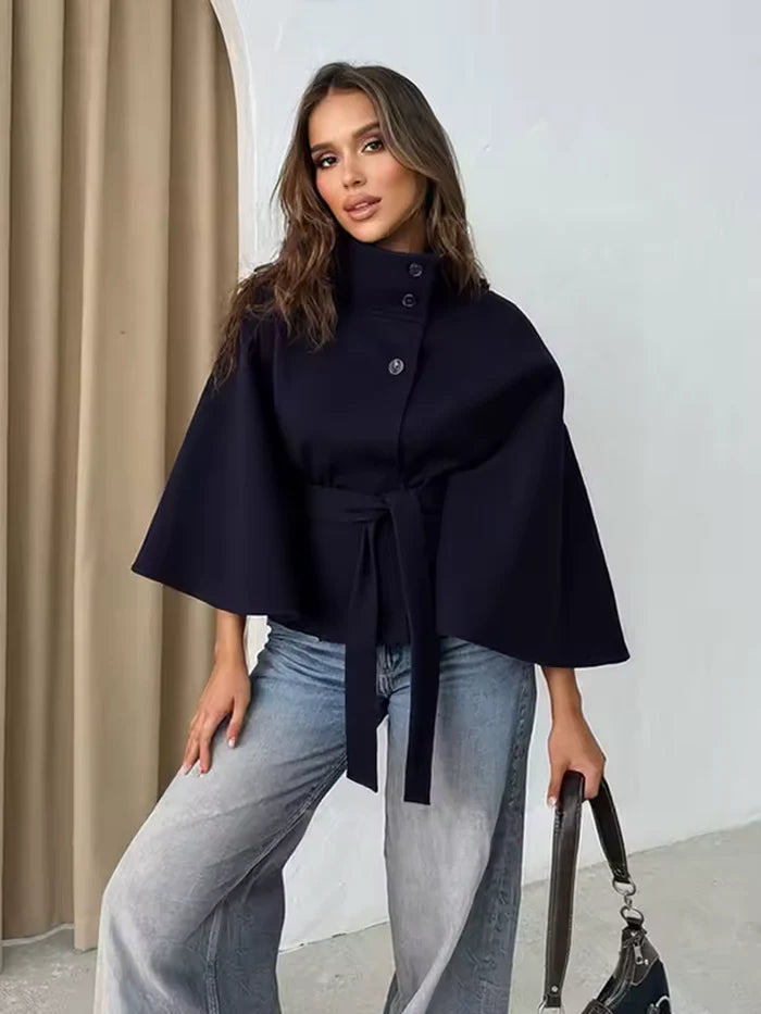 Le Manteau Cape Rivoli présente un tissu doux et structuré qui vous garde au chaud tout en mettant en valeur votre silhouette grâce à sa ceinture ajustable.