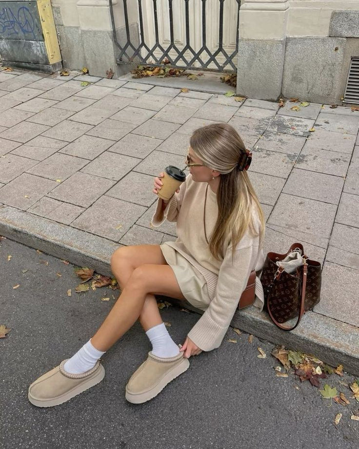Oui, la semelle légère en EVA (dérivée de la canne à sucre) est durable et conçue pour être portée tous les jours à l'extérieur. Le daim vegan est plus résistant à l'eau que le daim véritable, mais il n'est pas totalement imperméable. Pour une meilleure protection, nous vous recommandons d'appliquer un spray imperméabilisant, disponible directement dans notre boutique. Cela permettra à vos bottes de rester comme neuves, même en cas de pluie légère.