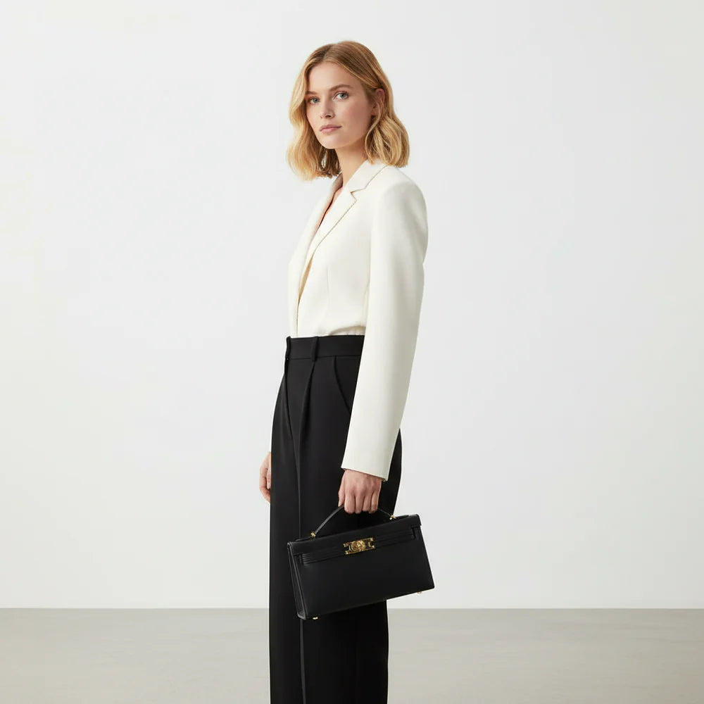 Il est fabriqué à partir de cuir végan 100 % premium, offrant une allure structurée et haut de gamme tout en restant léger et sans cruauté animale.