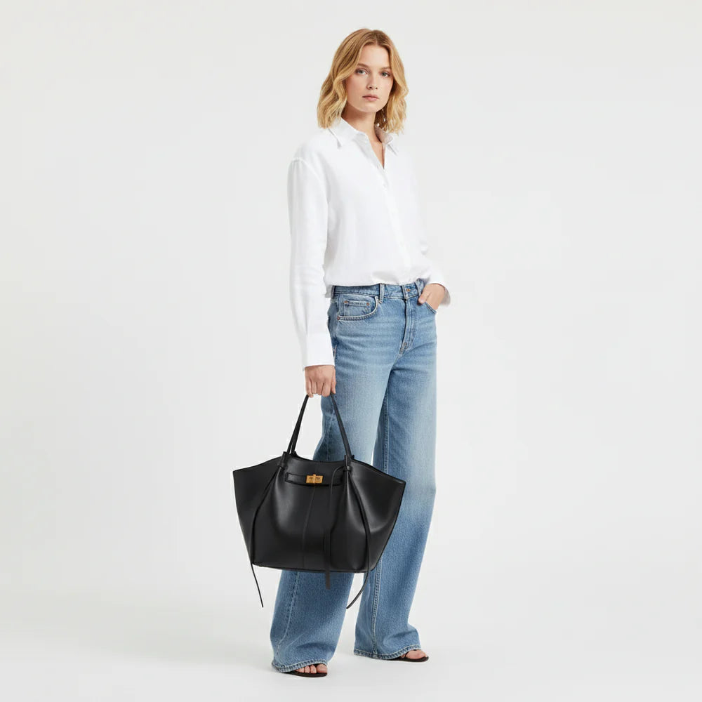 Le Tote Bag Céleste® est fabriqué en cuir vegan de première qualité avec une silhouette à la fois douce et structurée. Doté de doubles poignées, d'une boucle dorée et de liens en cuir raffinés, il élève n'importe quelle tenue avec une élégance intemporelle.